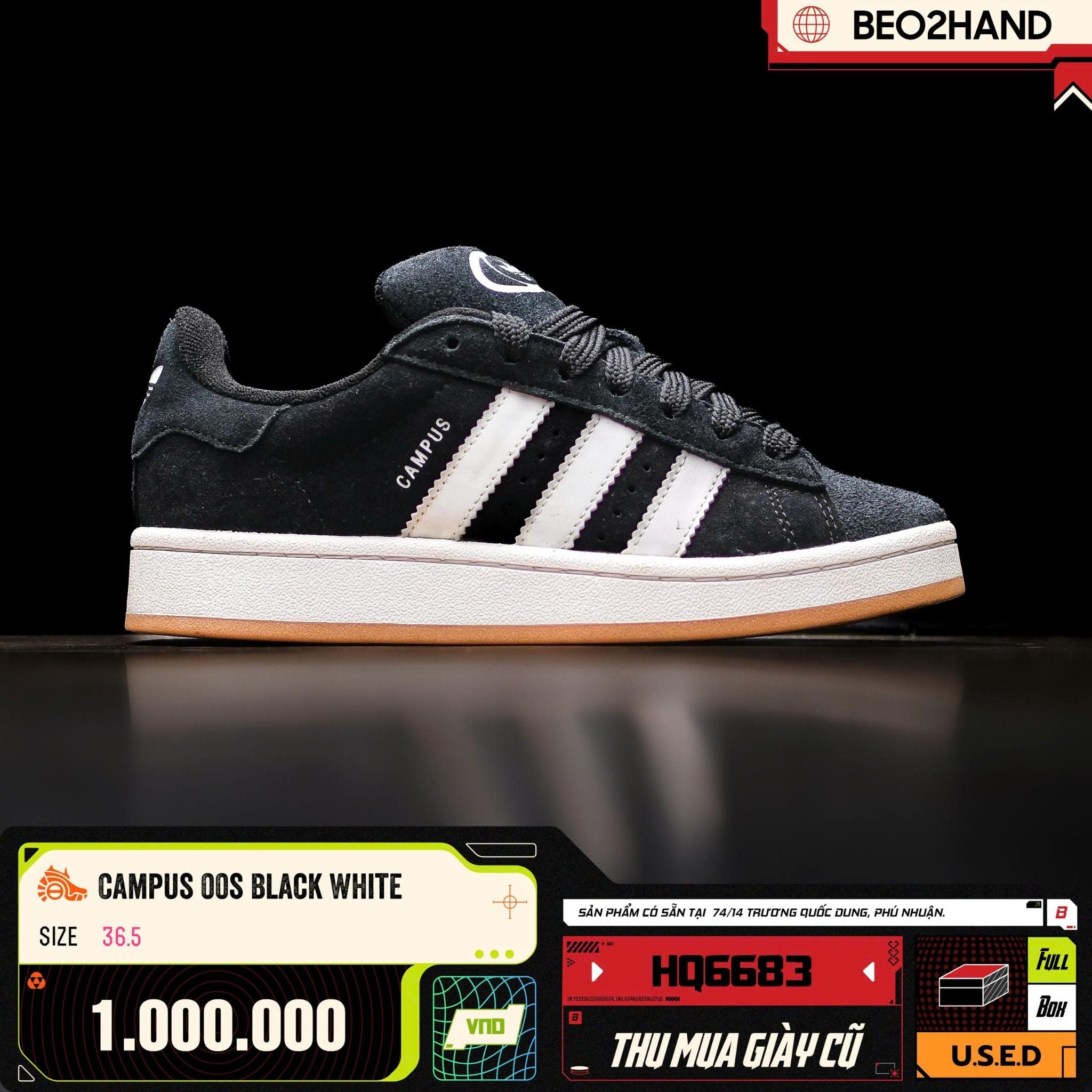 CAMPUS 00S BLACK WHITE - HQ6683 - 36.5