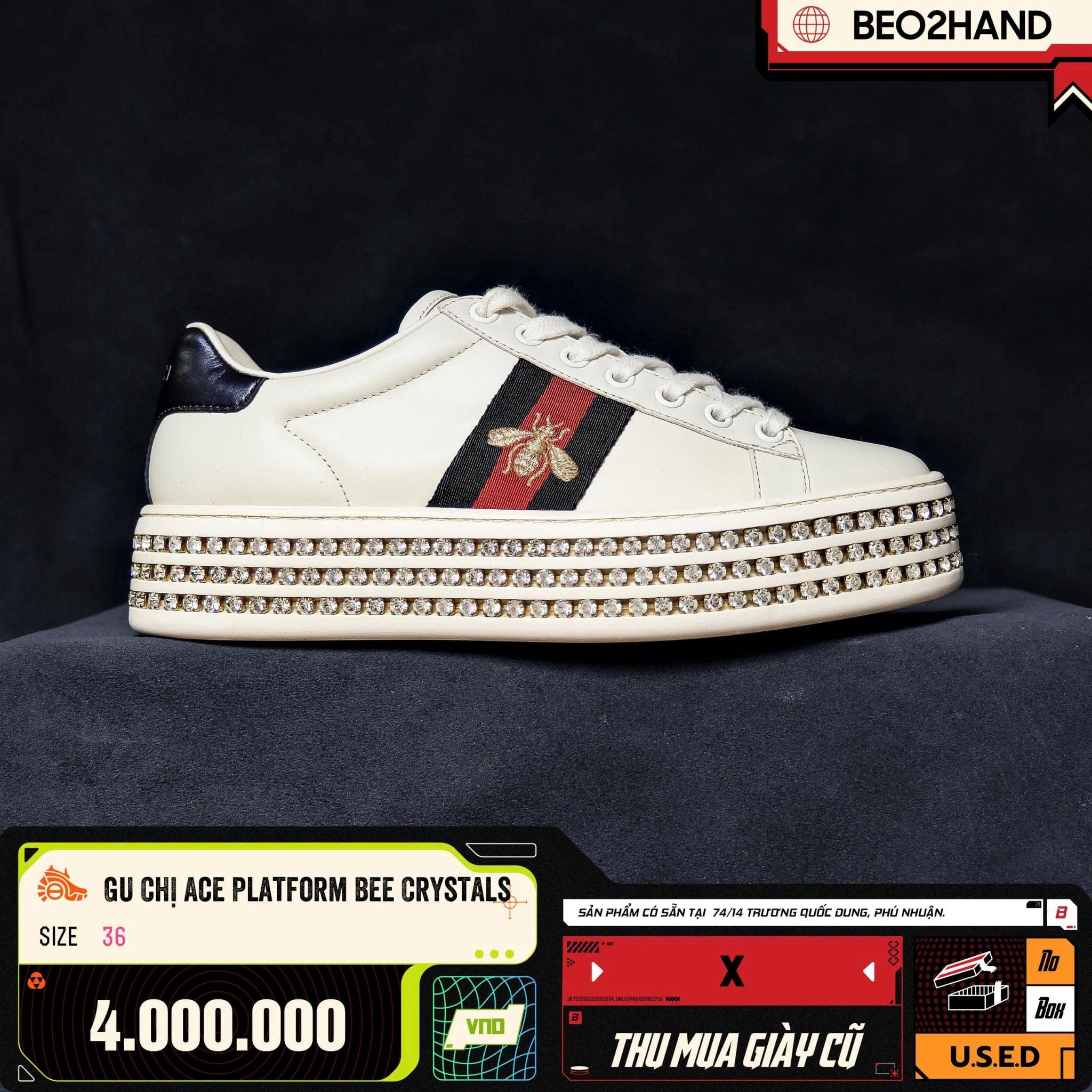 GUCCI ACE PLATFORM BEE CRYSTALS - 36